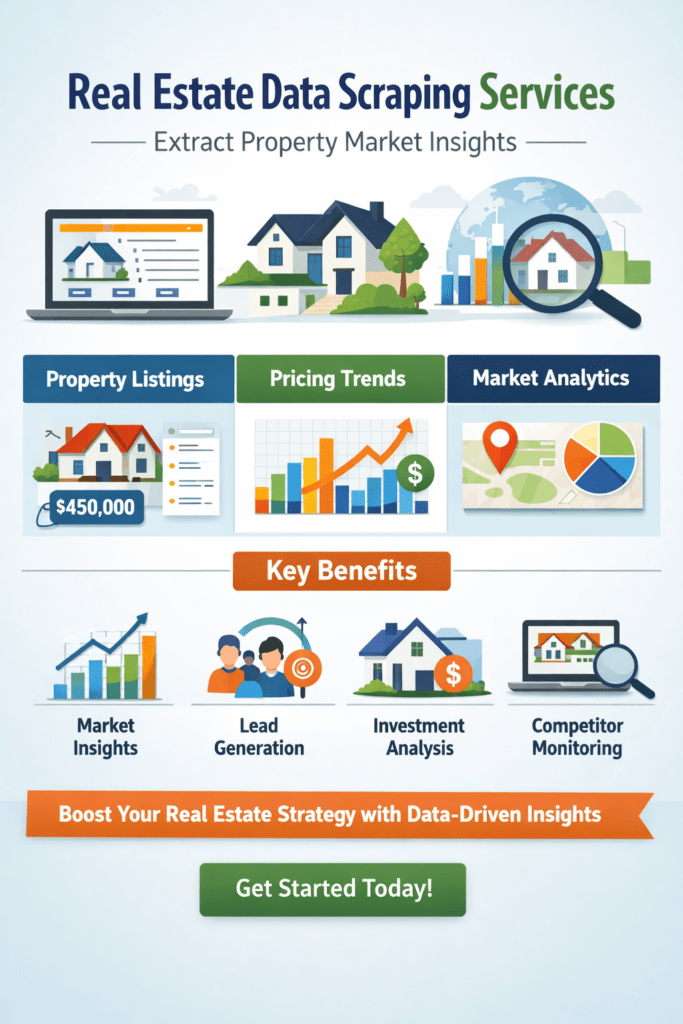 Real estate data scraping is the automated process of extracting property-related information from online platforms such as listing websites, rental portals, and real estate marketplaces. This includes collecting data like property prices, locations, features, agent details, and market trends.