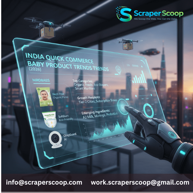 Quick commerce amplifies this: platforms stock everything from diapers (27.6% market share) to baby food (25.62% share), with e-commerce penetration rising due to convenience. In Ahmedabad, quick deliveries address urban parents’ needs amid Gujarat’s growing economy. Scraping reveals trends like organic skincare surges during festivals or summer demand for hydrating lotions.